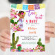 Convite ao chá de fraldas Taco Bout Bebê com cacto. Perfeito para festa de chá de fraldas.