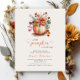 Este belo convite para o chá de fraldas apresenta uma abóbora aquarela que flui com flores e folhagem em queda acima das palavras "está a caminho uma abóbora pequena", com a palavra "abóbora" em escrita laranja decorada com curículos na imitação de videiras de abóbora. Personalize o texto com o nome da futura mãe no roteiro laranja e os detalhes na fonte serif de cinzas de carvão em um fundo bege. Ideal para um chá de fraldas de queda neutro em termos de gênero.