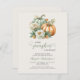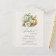 Este belo convite para chás de fraldas apresenta uma imagem aquosa de duas abóboras em tons pastéis de verde-sábio e laranja, enfeitiçada com flores brancas e laranja. Abaixo, aparecem as palavras "uma pequena abóbora está a caminho", com a palavra "abóbora" em guião verde de sábio decorado com curlicudos na imitação de vinhas de abóbora. Personalize o texto com o nome da futura mãe no roteiro laranja e os detalhes na fonte serif de cinzas de carvão em um fundo bege. Ideal para um chá de fraldas de queda neutro em termos de gênero.