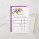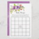 Cartões de jogos de bingo florais de chá de fraldas roxo e coral personalizáveis para suas especificidades de evento.