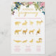 Este jogo divertido é perfeito para um chá de fraldas de chic floral. Os convidados combinam cada animal com o período médio de gestação. O design apresenta ilustrações florais pintadas e uma bela textura dourada que se parece com folha de alumínio quando impressa.