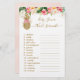 Estes elegantes Cartões de Jogo de Palavras de Bebê são uma forma excelente de se divertir com seu Chá de fraldas e é garantido que sejam um grande sucesso! Simplesmente passá-los durante o Chá de fraldas onde os convidados se divertirão desembaraçando as 15 palavras relacionadas ao bebê! A primeira pessoa com as respostas corretas ganha! A chave de resposta está incluída no verso. O design apresenta flores tropicais de cor-de-água de verão com falso confetti dourado e abacaxi dourado falso. Coordenar a caligrafia dourada elogia o adorável design floral.