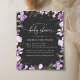 Este elegante convite orçamentário da nossa coleção Floral da Lavanda Lilac apresenta flores bonitas em tons poeirentos de lavanda lilás com um verde delicado, aliado a uma fonte moderna elegante. Perfeito para primavera, verão e festas de outono!
