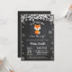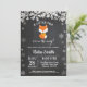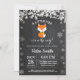Convite para Chá de fraldas Fox Winter. Floco de neve branco. Convite para Chás de fraldas de Menina ou Menina. Chá de fraldas De Feriado De Inverno Convide. Fundo do quadro.Preto & Branco.