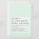 Um tamanho maior de 5,5" x 8,5" a um preço orçamentário, em uma elegante estoque LINEN de 110 lb - para uma sensação de luxo pelo valor do excelente, isso é perfeito para convites, menus, programas etc. Este alternativo de tamanho de orçamento também está disponível em outras opções de papel. O estoque do cartão SEMI-GLOSS de 110 lb tem aproximadamente a mesma espessura do cartão postal, portanto também funciona bem para convites. O papel FELT de 100 lbs é colorido por buff, NÃO branco, então adiciona um toque rústico. O estoque de papel MATTE de 80 lb é branco brilhante, para impressão nítida, excelente para seus menus e programas, enquanto o papel SATIN de 80 lb é fino e leve, ideal para gabinetes. POR FAVOR, OBSERVE QUE OS ENVELOPES OPCIONAIS SÃO UM POUCO MAIORES EM TAMANHO A 6,75" x 9", aprox. Convite Gingham Verde do Chá de fraldas do Parque Picônico. Sexo neutro. O cabeçalho da ocasião é grande em na moda em minúsculas, com os detalhes no fundo numa camada de opacidade sobreposta ao fundo de gingham. Personalize facilmente o texto para seus próprios detalhes.