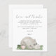 Um valor para o alternativo do ORÇAMENTO em tamanho menor de 4,5 x 5,6" de semirbrilho de 110 lbs, que é de espessura semelhante a um cartão postal (no entanto, não é adequado para uso como cartão postal). POR FAVOR, OBSERVE QUE HÁ UM convite por folha. Script de Orçamento Hippo Chá de fraldas Amor e Obrigados. Um design minimalista fofo para o seu obrigado você com um Hippopotamus e um roteiro de na moda para o cabeçalho Amor e Obrigados. Personalize facilmente o resto do texto.