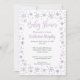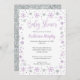 Este maravilhoso convite para o chá de fraldas de inverno apresenta uma lavanda roxa e um design de floco de neve prateado. Sexo neutro.