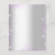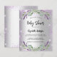 Um convite moderno e na moda. Um fundo de aparência pura prateada com brilho violeta, faíscas, flores de lavanda, flores e verde de eucalipto. Personalize e adicione o nome e os detalhes da festa.