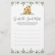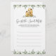 Adivinhamento de chá de fraldas com tema Leve, o cartão de bagunça doce do bebê apresenta uma ilustração de preguiça-d-água e verde-aquarela eucalipto garland e uma elegante fonte de estilo manuscrito.