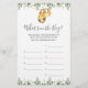 Adivinhamento de chá de fraldas com temas lentos que está no cartão de jogo de mala apresenta uma ilustração de preguiça-d-água e verde-verde-eucalipto garland e uma elegante fonte de estilo manuscrito.
