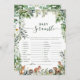Mantenha seus hóspedes entretidos com este jogo de palavras do Chá de fraldas Woodland Animal, uma atividade divertida e interativa que inclui animais adoráveis de aquarela, eucalipto verde e tipografia de caligrafia. Os hóspedes adorarão o desafio de desembaraçar palavras relacionadas a bebês enquanto desfrutam do encanto boho-chic e rústico deste jogo maravilhosamente desenhado. Perfeito para chás de fraldas modernos, neutros em termos de gênero, ou "É uma Rapariga", este jogo combina facilmente com convites, decorações e artigos de papelaria para bebês em áreas florestais. Quer você esteja hospedando uma reunião íntima ou uma grande celebração, este elegante jogo de chá de fraldas inspirado na natureza irá adicionar um toque de diversão e estilo ao seu evento. Tecla de resposta, TTBLOL → FRASCO PAERIFCI → EMBALAGEM KENTLAB → ROSTELO BLANKET → MALHA DE ROLAMENTO → CRBI DE PAI → CRIB BBYA RWEDPO → BABY SIEPW → WIPES RAEPDI GAB → SACO DE FRALDA ERISADP → FRALDAS MYMOM OMUROMUME ALF → FÓRMULA TDYDE ABER → TEDDY BEAR RAC TEAS → CARRO BANCO LACRICHE → RATELO DE CUIDADOS DE CRIANÇAS → RATTLE SABIN → BASIN HICRA → CAIR SOTOBIE → BOOTIES GHIH CHIAR → ALTO CADEIRO