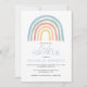 Convidado para chá de fraldas na moda do arco-íris de cor aquática moderna. Azul