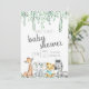 Veja a coleção do Bebê Safari Animal de Emmyink para a decoração de festas para combinar com estes super bonitos convites de chuveiros de bebês neutros de gênero!