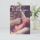 Celebre a chegada de seu recém-nascido e expresse sua gratidão aos entes queridos com nosso Chá de fraldas. Obrigado Foto de Nascimento. Esta carta personalizada é uma bela maneira de anunciar o nascimento do seu filho e obrigado os seus convidados chás de fraldas e amigos familiares. Apresentando um lugar especial para a foto do seu bebê na frente, este anúncio se torna uma merecedora para todos que o recebem. O verso do cartão permite uma mensagem personalizada, expressando sua alegria e gratidão. O design é aprimorado por uma elegante fonte desenhada à mão, adicionando um toque de sofisticação e calor. Esta opção de design refletida complementa o anúncio alegre e o obrigado sincero da mensagem. Personalize o cartão com a foto do seu bebê, o nome, as estatísticas de nascimento, a data de nascimento e os nomes dos pais. As palavras "Obrigado" são exibidas de forma destacada em uma moderna fonte branca na frente, criando um belo e sincero gesto de gratidão. Nosso Chá de fraldas Obrigado Anúncio de Nascimento de Foto é mais do que apenas um cartão; é uma maneira significativa de compartilhar o entusiasmo da chegada de seu recém-nascido e expressar sua gratidão para com aqueles que o apoiaram. Seu formato vertical facilita a exibição e o tesouro.
