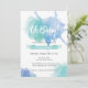 Chá de fraldas com letra manual Oh bebê e salpicos de água azuis e aqua