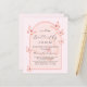 Um fundo rosa dourado com rosa dourado e arco cor-de-rosa. Decorado com borboletas. Personalize e adicione o nome da mãe a ser e os detalhes da festa. Texto: Uma Pequena Borboleta está a caminho. Traseira: cor de fundo rosa dourada. 1 folha = 1 convite impresso de borda a borda.