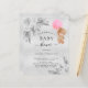 Para um chá de fraldas moderno estilo boho. Um fundo de olhar mal prateado. Decorado com rosas não coloridos, grama-pampas e ursinho-peluche segurando um balão rosa. Personalize e adicione um nome e detalhes da parte.