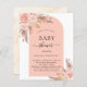 Para um chá de fraldas moderno. Um quadro de arco, fundo branco e rosa dourado. Decorados com ouro rosa e flores, rosas e erva-pampas cor-de-rosa. Personalize e adicione um nome e detalhes. Traseira: impressão de mármore rosa de ouro leve.