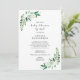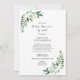 Chá de fraldas de longa distância por correio com ramificações de aquarelas e flores brancas varrendo os cantos do design. Personalize com suas informações ou clique em "Clique para personalizar mais" para editar estilos de fonte, tamanho e cores.
