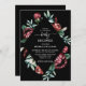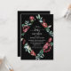 Este Chá de fraldas Floral Elegante Tendy Dark - apresenta texto branco escrito à mão e um roteiro elegante com rosas vermelho-chic escuro e robusto e verde-luxuoso sobre fundo preto. O reverso do convite é preto lacônico. Faça seu casamento expressivo e memorável com esta coleção de tendências escuras.