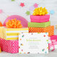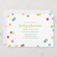 Este convite para chás de fraldas brancos apresenta confete de bolinhas divertida em uma variedade de cores, ao redor da elegante tipografia clássica. A design é perfeita para uma celebração divertida e alegre da chegada de um novo bebê. O convite também está disponível em formato digital acessível, permitindo um download fácil, impressão em casa ou envio eletrônico.