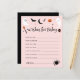 Celebre seu chá de fraldas de halloween com este adorável jogo "Desejos por Bebê", com um tema cor-de-rosa assustador! Perfeito para ideias de chás de fraldas de halloween, este doce ajustado de atividade aludiu ideias de chás de fraldas temáticos e pequenas ideias de chás de fraldas. Quer você esteja planejando um chá de fraldas assustador ou explorando ideias de chá de fraldas das bruxas, este cartão é uma bonitinha. Está quase a nascer um pequeno boo, e está a nascer um bebê! O excelente para um bebê é criar ideias de chá de fraldas, o bebê está a criar ideias de chá, e ideias de chá para bebês a criar.