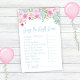 Jogo de chá de fraldas de película floral azul Adivinha que o Preço Certo pode ser personalizado com o nome da mãe ou pode ser alterado para Advice for the Parents-to-Be, usando o nome do casal.