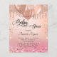 Para um chá de fraldas elegante. Um fundo rosa dourado e cinza rosa-claro. Decorado com rosa dourado, brilho rosado, aspecto de pingar tinta e balões. Personalize e adicione o nome da noiva a ser e os detalhes da festa. O nome e o texto: Chá de fraldas são escritos com um script de estilo manuscrito