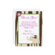 Estes cartões de agradecimentos 4x5 LISOS adoráveis são perfeitos para agradecer a seus convidados para os presentes que trouxeram, ou mesmo apenas para sua empresa em seu evento. Aperfeiçoe para um chá de fraldas ou uma festa de aniversário! Estes são completamente customizáveis e o poema pode ou ser removido completamente simplesmente pela supressão todo do texto junto para sair da sala para uma mensagem pessoal escrita mão, ou você pode personalizar com seu próprio poema ou pelo texto. Estes são imprimidos no papel liso, vibrante, matte do peso do cobrir 110lb. Contem o índice do reciclado de 50%. Aperfeiçoe para seus convites mais formais, obrigado cartões e anúncios do evento. Estes vêm com os envelopes brancos padrão. Nós temos uma linha inteira devotada a este design aqui na loja do zazzle sob * projete a aba do menu das coleções incluir os convites (5x7), etiquetas do retorno, etiquetas de envio pelo correio, selos do envelope, selos postais, picaretas do bolo do copo, envoltórios da garrafa de água, as 1,55 onças de Hershey. Grandes envoltórios do bar, as etiquetas diminutas de Hershey, envoltórios do saco da pipoca de microonda, cartões que pode escrever-se do lugar, chapéus de coco do saco do presente, obrigado que LISO você carda (4x5), obrigado DOBRADO você os cartões (4x5), Tag do favor, cartões do menu, Matchbooks da hortelã, cobrir do pirulito, marcador, cartões do Bingo, marcadores do cartão do Bingo, cartão do Bingo chama folhas, os cartões que pode escrever-se do conselho (4x5), etc.