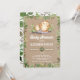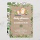 Convite para chás de fraldas de trigo com ilustração de verduras de aquarela, folhagem e uma adorável coruja de múmia e seu bebê