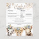 Acrescente risos e brincadeiras ao Chá de fraldas com nosso 'Chá de fraldas de Predições de Bebês e Conselhos Safari'. Uma maneira divertida de adivinhar as preferências dos hóspedes! Pegue a sua agora e crie memórias inesquecíveis!