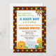 Cumprimente seu tema de chá de fraldas safari com este convite bonito.