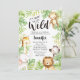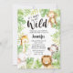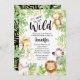 Um belo convite para Chás de fraldas de animais da selva. Projetado internamente por Tweet Party Printables. ©Tweet Party 2019