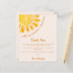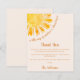 Este cartões de agradecimentos de chá de fraldas apresenta o texto "Um pequeno raio de sol está quase aqui!" com um sol amarelo em um fundo creme. Perfeito para um chá de fraldas neutro em termos de gênero. Facilmente personalizável. Original Watercolor © Michele Davies.
