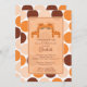 Convite para Chás de fraldas de gêmeos adoráveis, com um conjunto de girafas laranja com um fundo de bolinhas castanho e laranja. Itens correspondentes disponíveis em nosso compro. Perfeito para um chá de fraldas de gêmeos neutros. ©Stockberry Studio