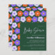 Padrão da Flor Retroativa de Cuta Orçamentária no Convite para Chá de fraldas Roxo e Verde