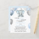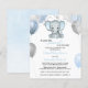 Este adorável convite para chás de fraldas apresenta elefante para bebês azuis e cinzas com balões e confete. A parte traseira apresenta aquarela azul macia. Facilmente personalizado para seu evento clicando em personalizar. Perfeito se você precisa de um chá de fraldas na moda num orçamento.