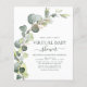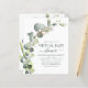 Orçamento Eucalyptus Greenery Succulent Botanical Watercolor Primavera Gênero Menino Neutro ou Bebê Rapariga Virtual Bebê Convites em fundo branco - inclui uma magnífica e elegante tipografia de escrita com folhas botânicas modernas e verde para a celebração especial da Mãe a Ser.