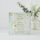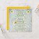 Várias margaridas brancas sobre um fundo branco de algodão mole. O texto é branco com contornos amarelos ouros e uma sombra verde mais leve como um convite totalmente personalizável a um chá de fraldas para ser mãe.