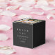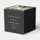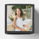 Elegante caixa de agradecimento de chá de noiva personalizada com uma foto, nome e data em preto e taupe.