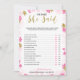 Um delicado jogo floral moderno de chá de noiva "Ele Disse Ela Disse", o design apresenta um padrão floral rosa e dourado, este cartão é personalizado com o nome da noiva e a data do chá.
