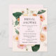 Este é um convite de chá de panela para noiva cor-de-rosa e floral moderno, fresco e acessível para celebrar a futura noiva! Usando um design boêmio e lindas flores cor-de-rosa e pêssego e cores de fundo suaves e cremosas, edite todo o texto conforme necessário usando o modelo fornecido e celebre o próximo casamento da noiva com estilo elegante.