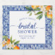 Este convite de chá de noiva apresenta um tema azul brilhante com citrinos.