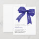 Um fundo branco elegante, decorado com grande arco azul escuro. Personalize e adicione um nome e detalhes da parte. Texto: Algo azul antes de mim. 1 folha = 1 convite impresso borda a borda.