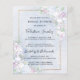 As orquídeas brancas criam arranjos florais elegantes e decoram uma fina estrutura de ouro. Uma lavagem com aquarela azul macia fornece o fundo.