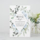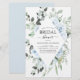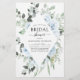 Rosas Florais Azuis e Eucalyptus Botanical Greenery Primavera ou Convites de chá de panela de Casamento de Verão - inclui uma bela e elegante tipografia escrita com flores botânicas tropicais modernas e verde para a celebração especial do dia do casamento.