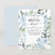 Rosas Florais Azuis e Eucalyptus Botanical Greenery Primavera ou Convites de chá de panela de Casamento de Verão - inclui uma bela e elegante tipografia escrita com flores botânicas tropicais modernas e verde para a celebração especial do dia do casamento.