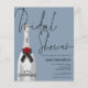 Um alternativo do preço do orçamento. Não inclui envelopes, mas há uma opção para adicioná-los, se desejar. Um design moderno com uma Garrafa de Champanhe prateada com estilo de letra na moda com um Chá de panela de escrita preta que se sobrepõe ligeiramente e um fundo azul empoeirado em cada lado. Personalize facilmente o resto dos detalhes. Você também pode alterar as cores do texto e do plano de fundo em ambos os lados, se desejar através da opção Personalizar mais.