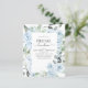 Rosas Florais Azuis e Eucalyptus Botanical Greenery Watercolor Primavera ou Summer Wedding Luncheon - inclui uma bela e elegante tipografia com flores botânicas tropicais modernas e verde para a celebração especial do dia do casamento.