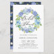 Convide convidados para o seu evento com este chá de panela personalizável. Apresenta uma bela coroa floral de drangeas e rosas azuis. Personalize este convite floral adicionando seus detalhes. Este chá de panela de hydrangea é perfeito para chás de panela de primavera e inverno. Itens correspondentes estão disponíveis.